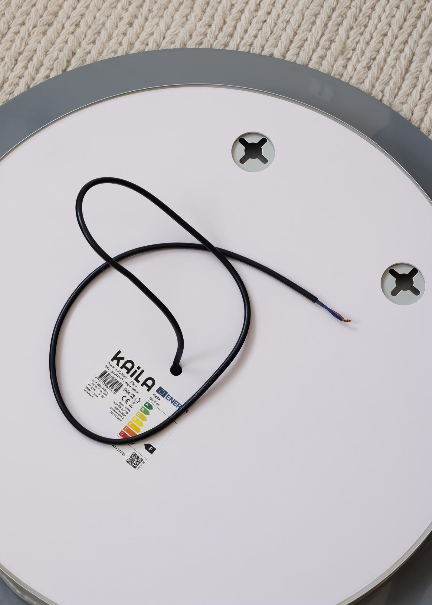 Le miroir est adapté pour les salles de bain mais grâce à son design intemporel et élégant, il a également fière allure sur les autres murs de la maison. Le miroir mesure 40 cm de diamètre, il ne fait que 3 cm d'épaisseur et est doté de supports muraux. Le miroir est destiné à une installation fixe et se connecte à un interrupteur. Afin que le miroir puisse fonctionner correctement, celui-ci doit être connecté à un interrupteur normal et non à un gradateur de lumière.