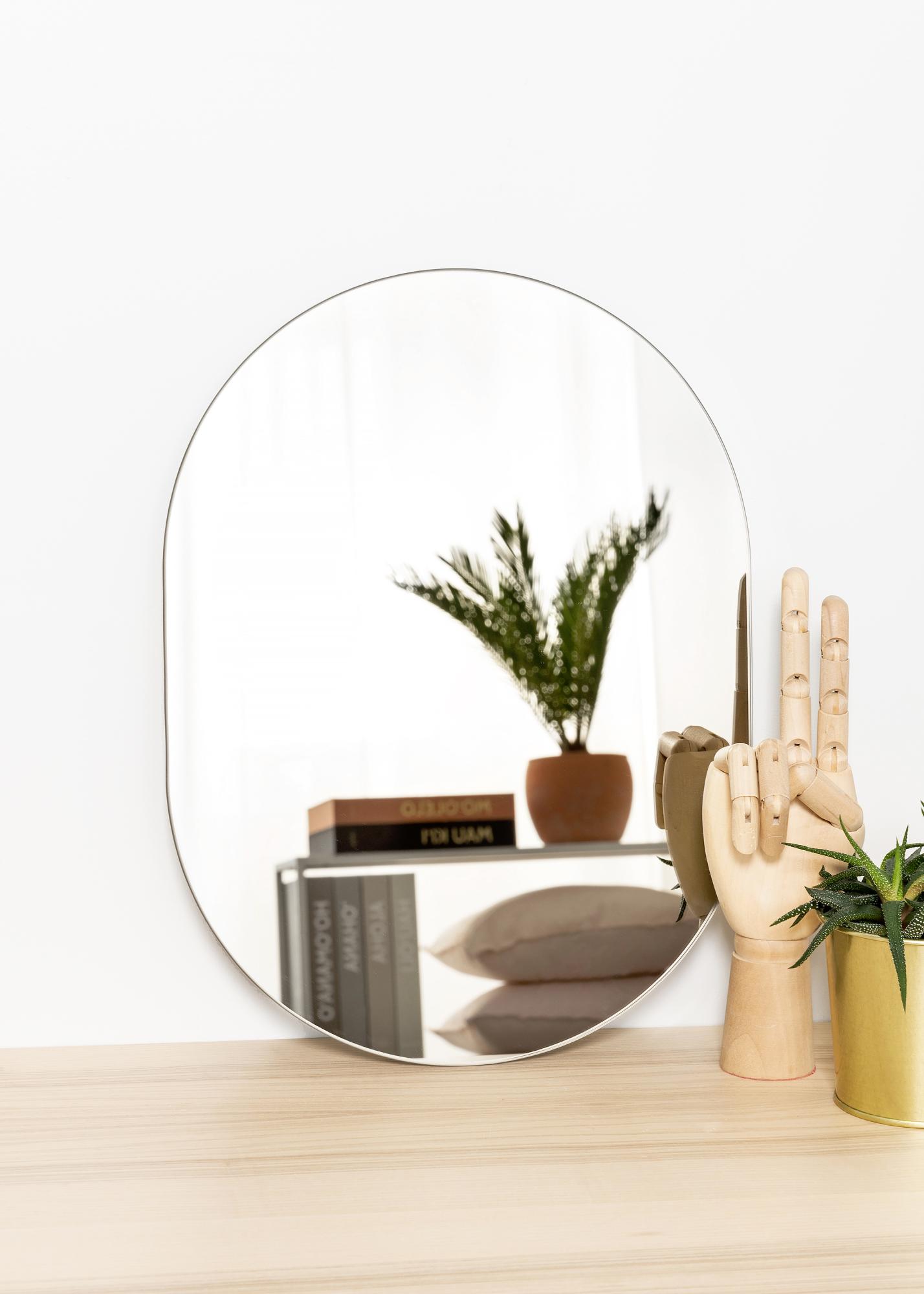 Un miroir ovale a des dimensions aussi pratiques qu'un miroir rectangulaire, avec la même élégance qu'un miroir rond : la forme de miroir quasi parfaite, en d'autres termes ! Ce miroir ovale est également très mince et n'a pas de cadre, ce qui amplifie l'aspect élégant.