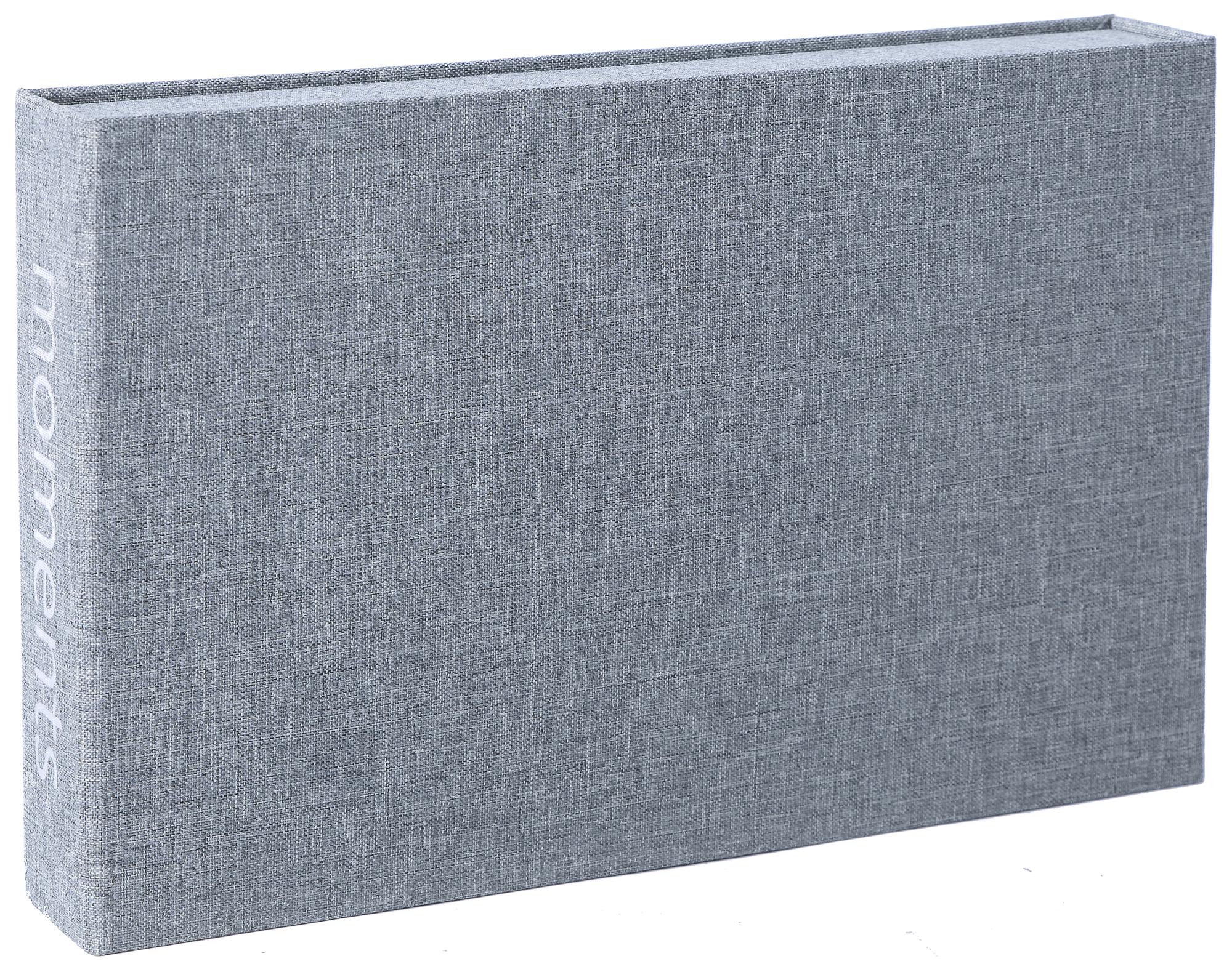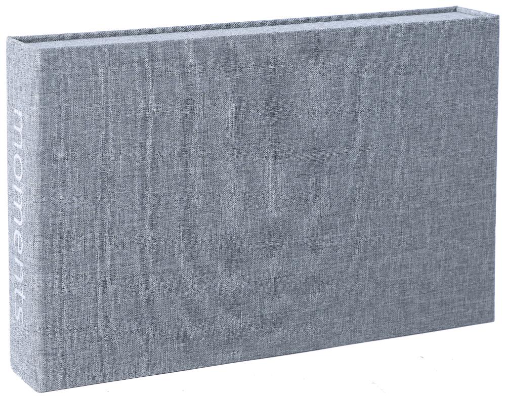 Bel album photo de design élégant à la touche exclusive. La couverture est habillée de textile gris et le dos de l'album est orné d'une belle impression portant le texte "moments".