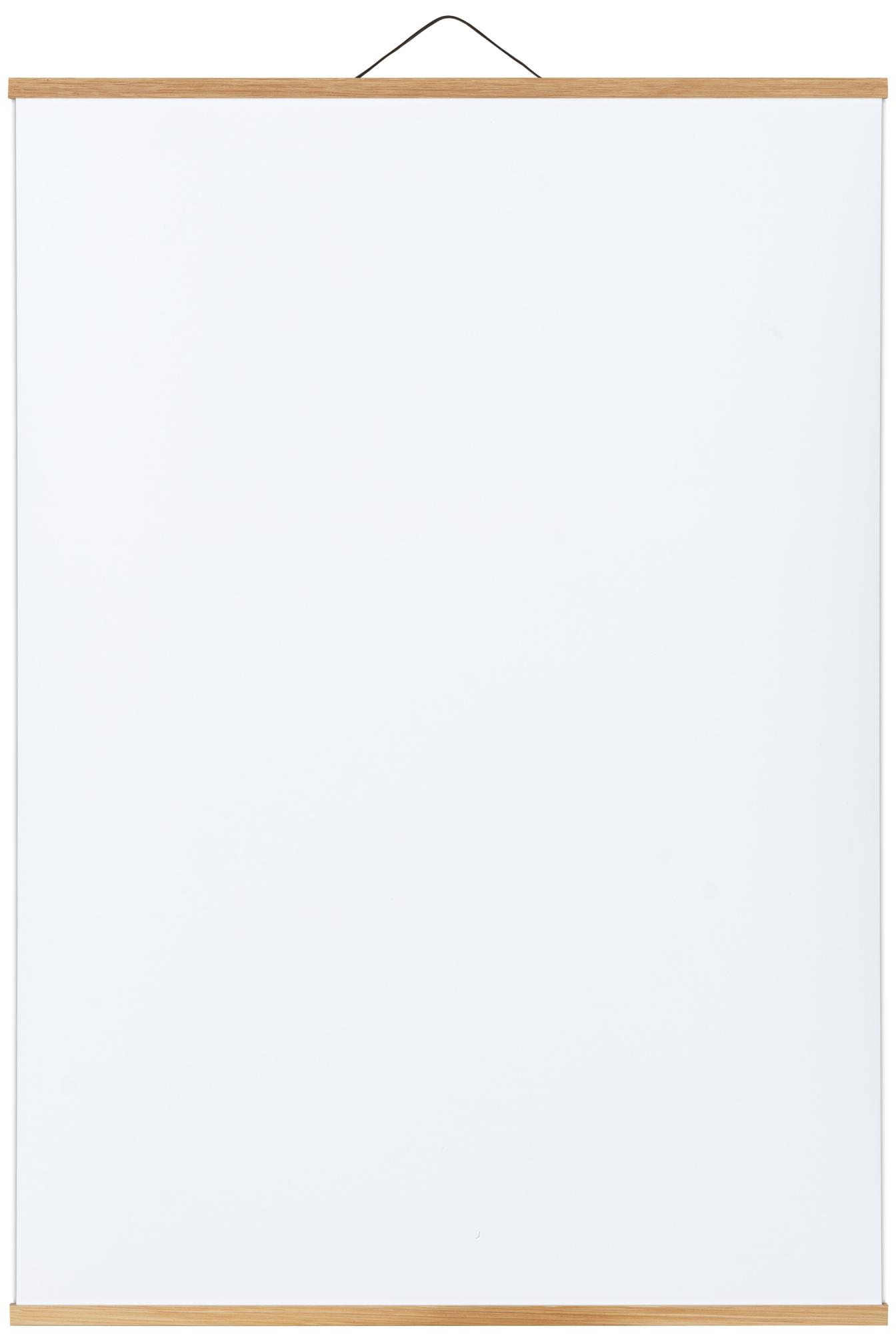 Vous accrochez facilement votre poster entre les deux baguettes du support pour poster à l'aide des aimants associés.